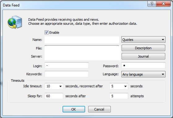 This plugin enables you to insert datafeeds from any external sources into your MT4. This may follow FIX4, FIX5, EMAPI and any other non-standard protocol. You are covered!